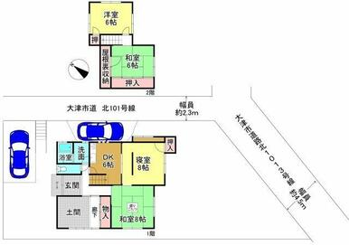 | 間取り(内訳) | 4DK(DK6、和8、6、洋8、6) | 建物面積 | 91.07㎡ |